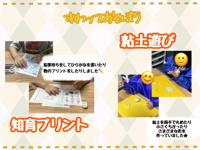 苦手なことにも先生と一緒に行うことで挑戦し、集中して活動に取り組むことができていました!
