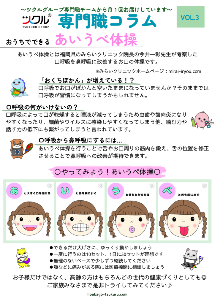 今回は言語聴覚士がおうちで手軽にできるあいうべ体操についてご紹介しています。