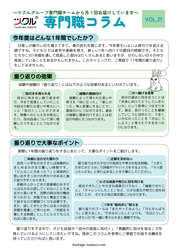 ツクルグループ専門職チームから月1回コラムをお届けしています。