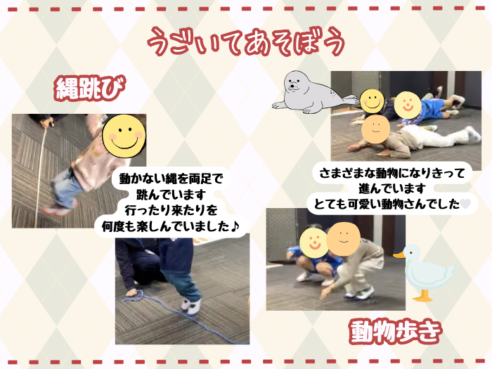 スタッフや他児童と一緒に声を掛け合いながら身体を動かして楽しんでいました。
