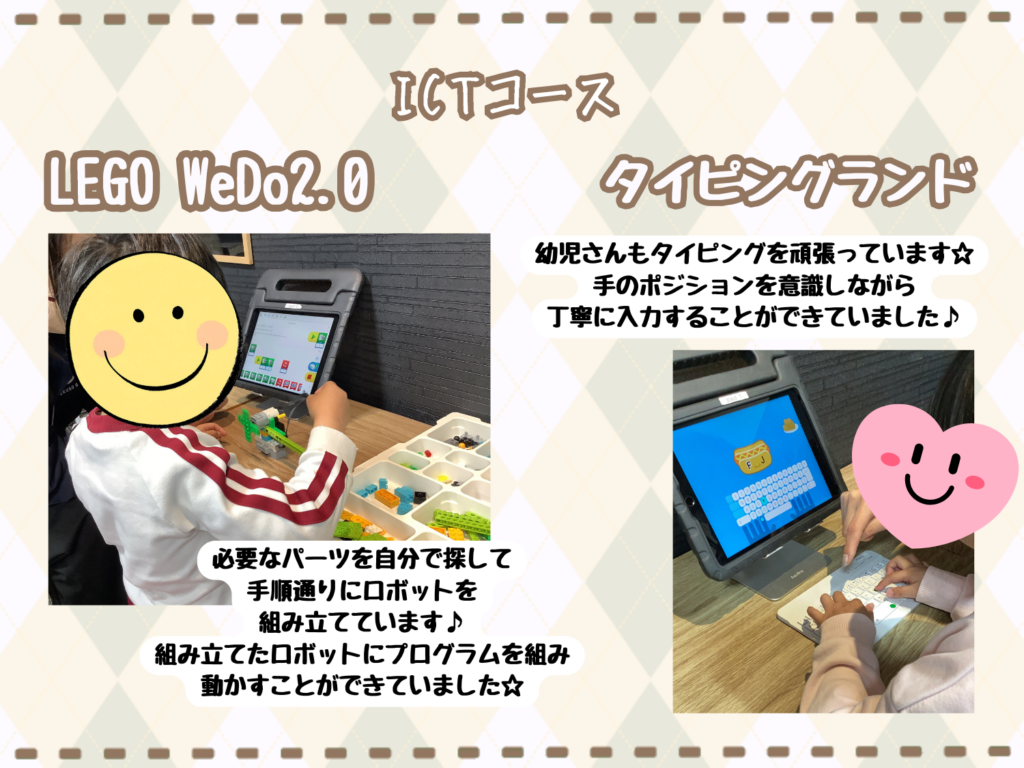 タイピングやLEGO WeDo2.0などICTの活動に興味を持ち、意欲的に取り組むことができていました。