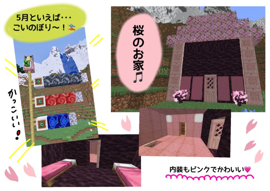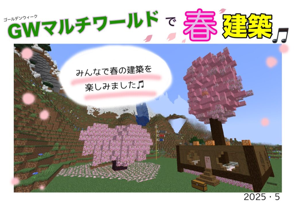 ツクルADVANCEミナーラ校では、マインクラフトのマルチサバーをたちあげ、マルチワールドで春の建築を「やりたい!」という人を募り行いました♪