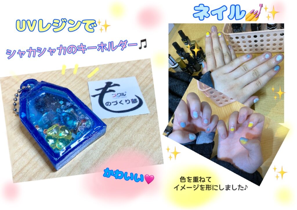 ものづくり部では、レジンで制作をしたり、ネイルを楽しみました♪