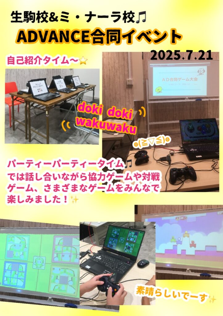 7月21日に、ツクルADVANCE生駒校とツクルADVANCEミナーラ校との合同イベントが開催されました♪