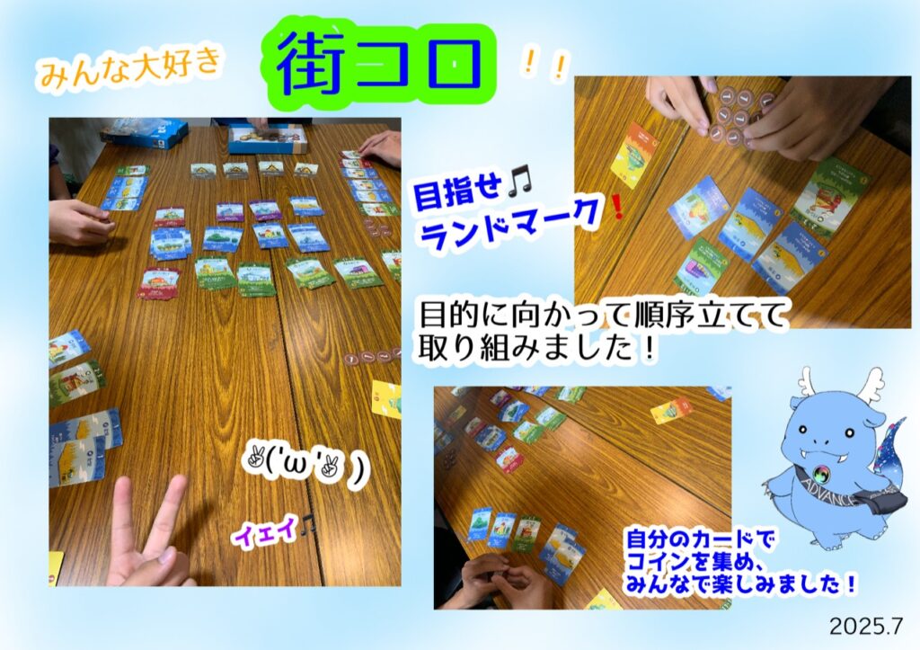 お友だちと「何する~?」と相談して何をするか決めています。UNOも人気ですが今月は街コロが盛り上がりました。