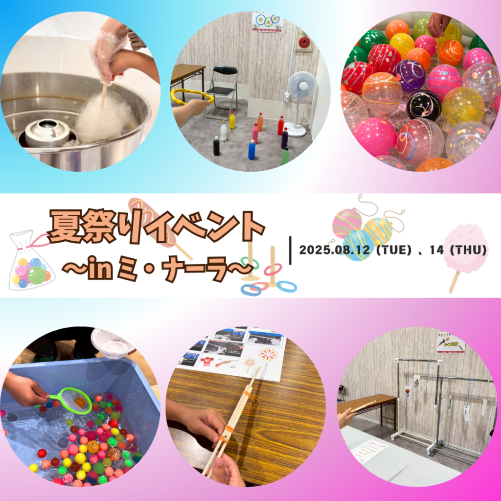 ヨーヨー釣り・スーパーボールすくい・わなげ・的当て・わたがし・フランクフルト等