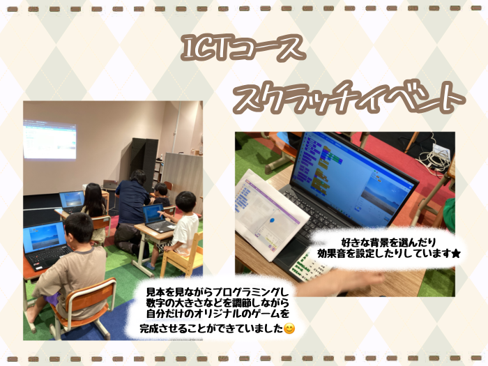 ICTの活動ではスクラッチイベントで自分だけのオリジナルゲーム作りに挑戦しました!